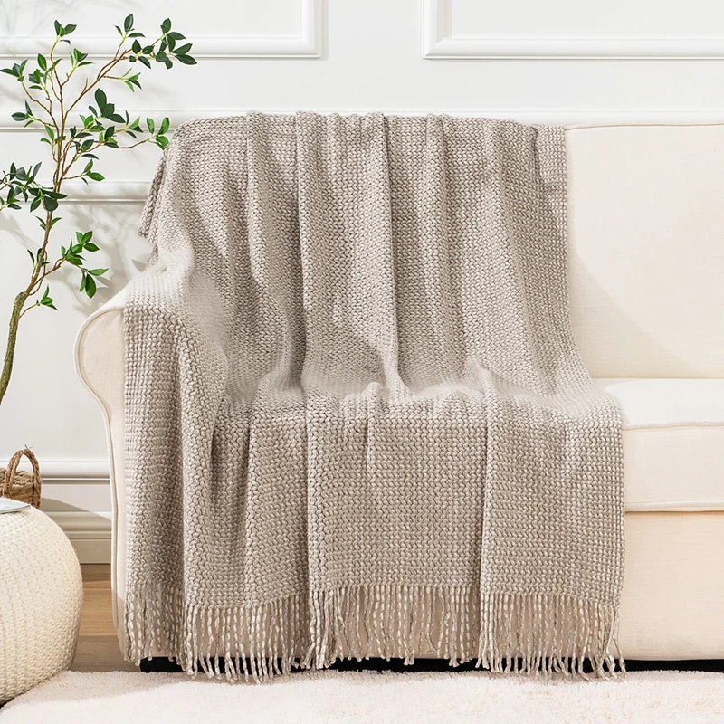 Knit Throw Blanket – Soft & Cozy Thick Warm Plaid Sofa Blanket for Bed and Couch, Solid Decorative Room Decor